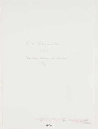 Bezeichnung: Verso Copyrightstempel der Galerie Wilde, Köln. Zudem mit Bleistift von Jürgen Wilde signiert, datiert, nummeriert und betitelt.