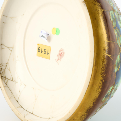 Material: Edelsteinporzellan, farbige Unterglasurbemalung, Reliefgoldauftrag.