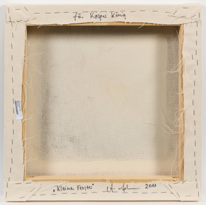 Bezeichnung: Betitelt, signiert und datiert verso auf umgeschlagener Leinwand: "Kleines Fenster" A. Schulze 2011. Sowie gewidmet: Für Kasper König.