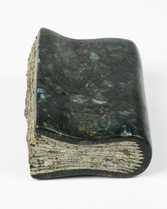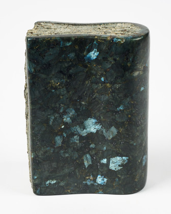 Technik: Dunkler Granit mit changierenden Einschlüssen, teilweise poliert.