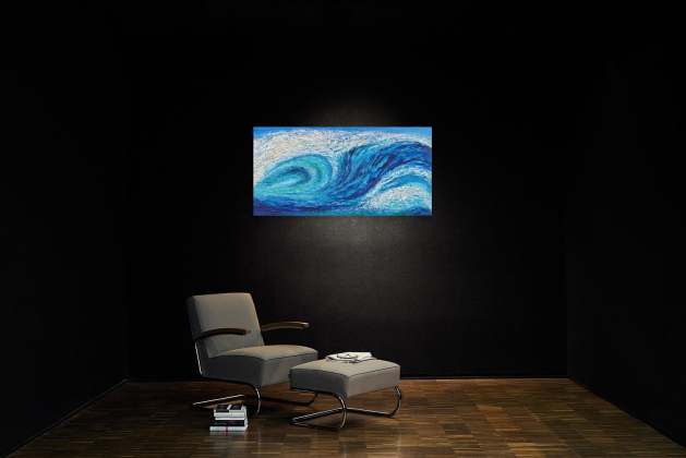 Bezeichnung: Signiert und datiert oben rechts: Skiba 2005. Sowie signiert und datiert verso: Skiba 11. Mai 2005 - begonnen Juli 2005 beendet Skiba. Hier zudem mit Werkangaben und betitelt "WELLE" "WAVE".