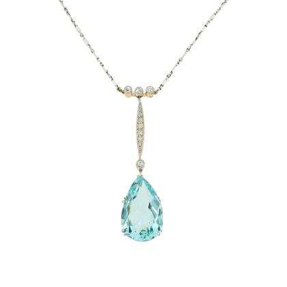 Beschreibung: Zartes Art Deco Collier mit einem Aquamarin-Tropfen.