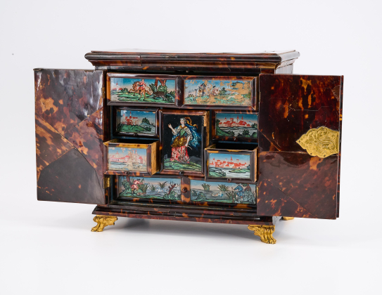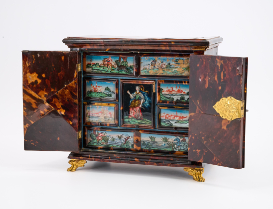 AUßERGEWÖHNLICHE KABINETTKÄSTCHEN MIT LANDSCHAFTEN UND ALLEGORIE DER HOFFNUNG.