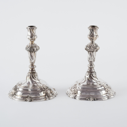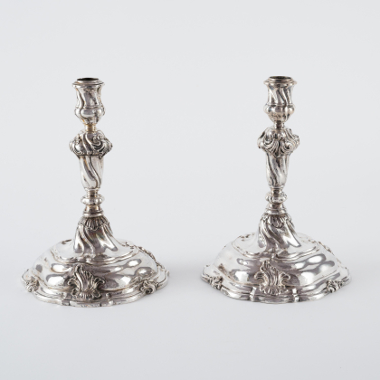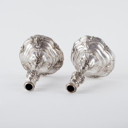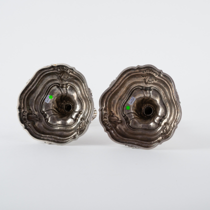 a) BZ Augsburg 1743-45 (Seling Nr.1920), MZ Salomon Dreyer (1735-62, ebd. Nr.2263). b) Ohne BZ, MZ Johann Philipp Heckenauer (1741-93, ebd. Nr.2332). Jeweils am Fußrand mit dem königlich sächsischen Wappen gestempelt.