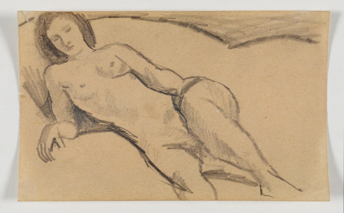 Blatt leicht gebräunt. Kleiner Einriss in der linken oberen Ecke (ca. 0,3 cm). Am linken Blattrand mittig kleine punktuelle Bestoßung. Verso Reste alter Montierung in den Ecken Ansonsten befindet sich die Arbeit in einem sehr guten Zustand.