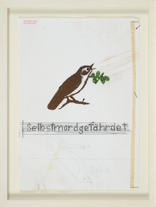 Birgit Brenner Deutschland Zeitgenössische Kunst Unikate 2000er Rahmen (35,5 x 27cm) Tier Papierarbeit Collage Vögel