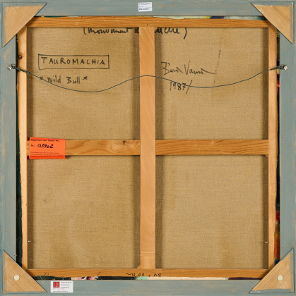 Bezeichnung: Bezeichnet, betitelt, signiert und datiert verso: ... (schwer lesbar) TAUROMACHIA +WILD BULL+ Boris Vansier 1987/.