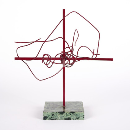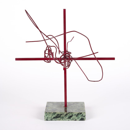 Technik: Messing, rot lackiert auf Marmor.