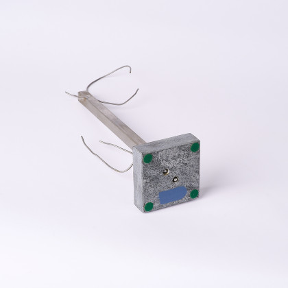 Vereinzelt minimale Korrosionsspuren. Minimale Verschmutzungen in den Vertiefungen. Minimale Kratzspuren am Stab und am Sockel. Ansonsten sehr guter Zustand.