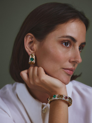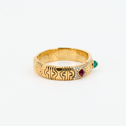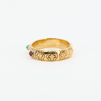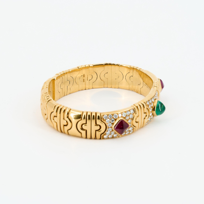 Beschreibung: Signiert "BVLGARI". Karatgewichte der Farbsteine in den Armreif graviert.