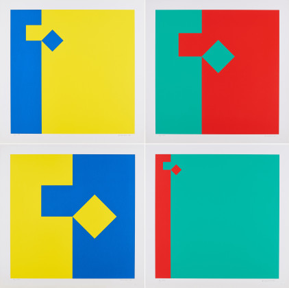 Camille Graeeser. 1974. Mappe mit 4 Farbserigrafien auf leichtem Karton. Jeweils: 60 x 60cm (70 x 70cm). Signiert, datiert und nummeriert. Editions Média, Neuchâtel (Hrsg.). Ex. 19/100.