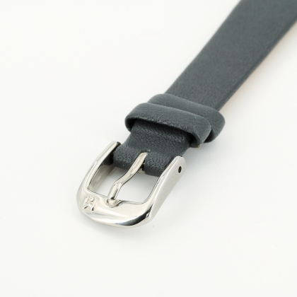 Gehäuse/Armband: 750/- Weißgold, Lederarmband mit Dornschließe, Zffbl. grau, Zeiger silbern, arabische Ziffern hellgrau.