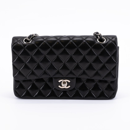 Beschreibung: Ein großes Innenfach mit Klappe. Auf der Innenseite zwei verschlungene C´s eingestickt, zwei kleine Einschubfächer, ein großes Einschubfach, ein kleines Reißverschlussinnenfach. Original Zertifikat-Karte anbei.