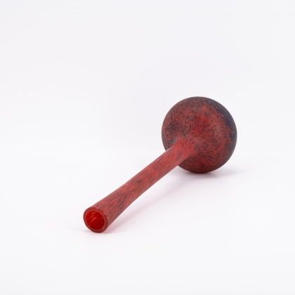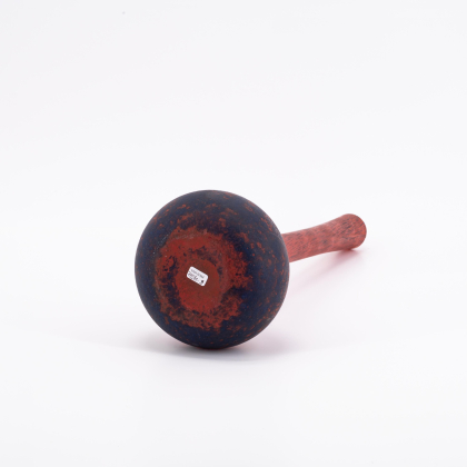 Material: Farbloses Glas, Rot hinterfangen, Pulvereinschmelzungen in Blau.