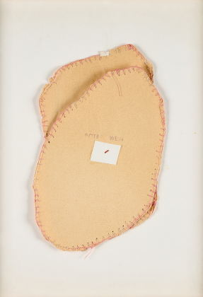 Technik: Papier, gestempelt und Stoff, collagiert auf leichtem Karton.