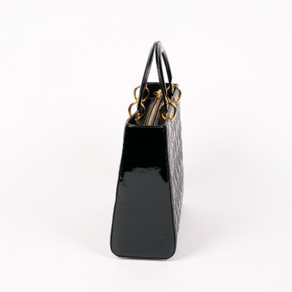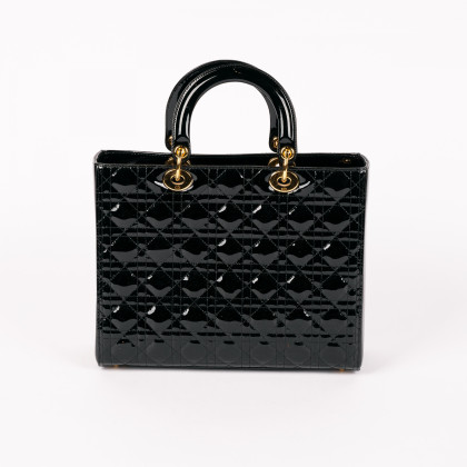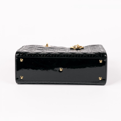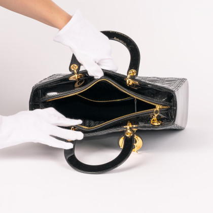 Material: Schwarzes Cannage Kalbslackleder, goldfarbene Metallelemente.
