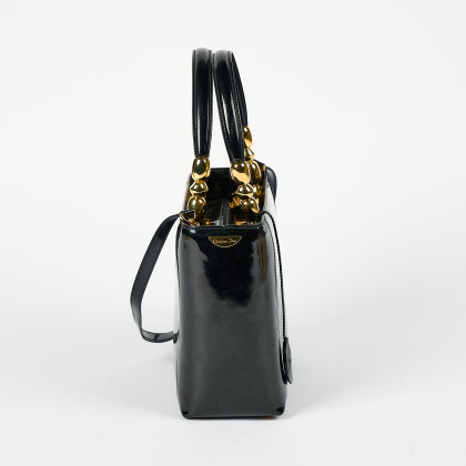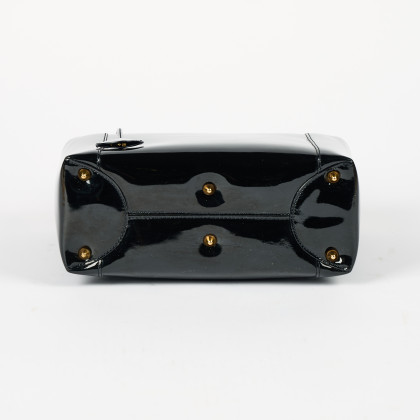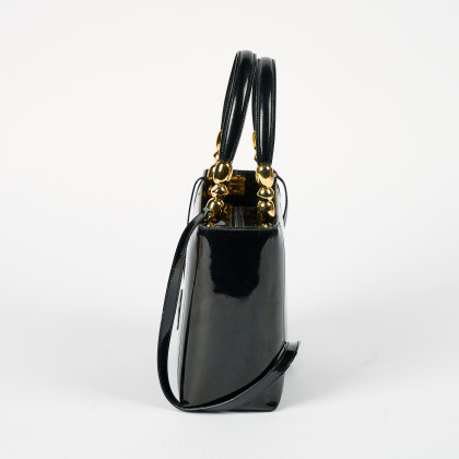 Material: Schwarzes Lackleder, goldfarbene Metallelemente.