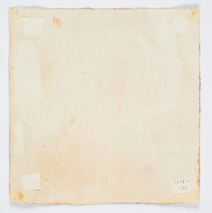 Herstellungsbedingt minimal gewellt. Minimal unregelmäßige Blattkanten. Verso Reste alter Montierung sowie Arbeitsspuren. Stecknadellöcher in drei Ecken. Ansonsten sehr guter Zustand.