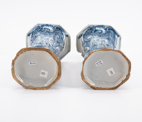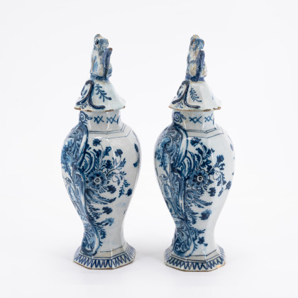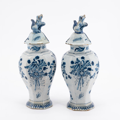 Beschreibung: Zwei Deckelvasen und zwei Stangenvasen.