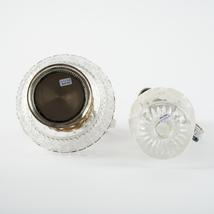 Technik: Silber, einmal mit Innenvergoldung. Glaskorpus.