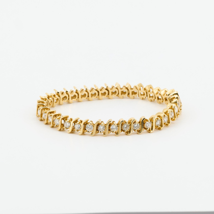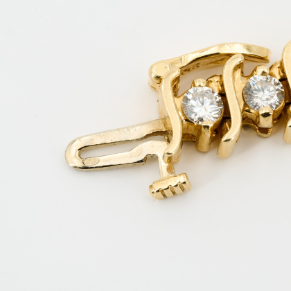 Beschreibung: Dekoratives Diamant-Armband mit Gold-Elementen zwischen Diamantbesatz in "S" Form.