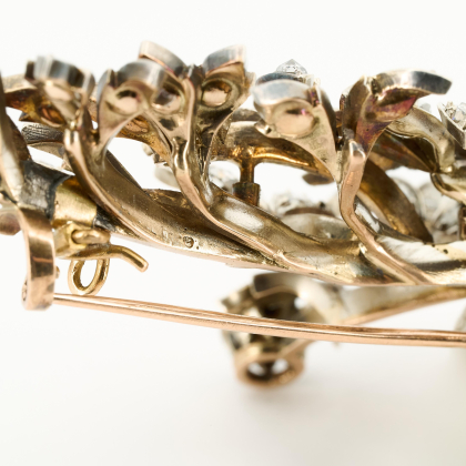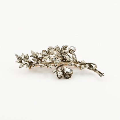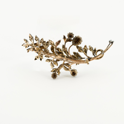 Beschreibung: Historische Brosche in Form eines mit Blättern bewachsenen Zweiges.