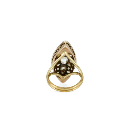 Diamanten: 31 Diamanten im Rosen-Schliff Ø 1,5 - 5,6 mm, wohl foliert.