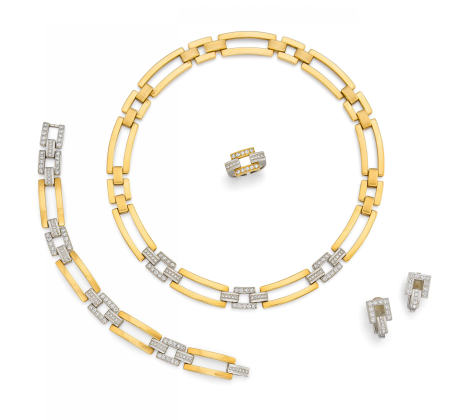 DIAMANT-SET: COLLIER, ARMBAND, OHRSCHMUCK UND RING.