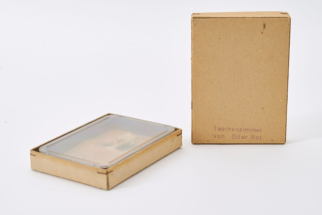 In originalem Pappkarton (11,5 x 8 x 2,5cm) mit dem Rotstempel "Taschenzimmer von Diter Rot" und dem Stempel des Herausgebers. Unlimitiertes Multiple.