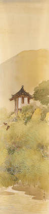 Technik: Farben und Tusche auf Seide bzw. Papier. Montiert als Hängerolle.