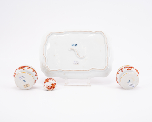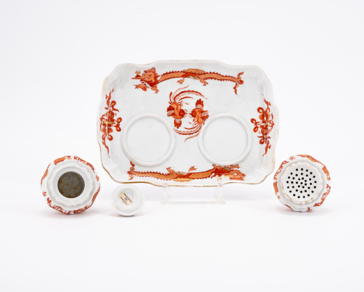Los 17 | Dreiteiliges Schreibset, Speiseteller und Teetasse mit Dekor "Roter Drache"