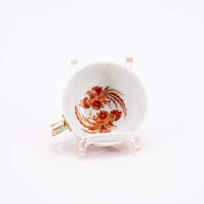 Technik: Porzellan, farbig staffiert, gold dekoriert.