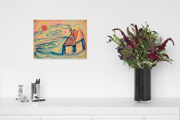 Edmund Kesting Informel Nachkriegskunst Unikate Haus Papierarbeit Aquarell Himmel