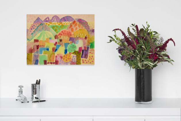 Eduard Bargheer Deutschland Expressionismus Moderne Kunst Unikate 1970er Rahmen (60,5 x 72,5cm) Landschaft Papierarbeit Aquarell Gebäude