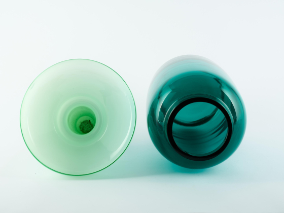 Technik: Farbloses und grünes Glas, teilweise milchiggrün unterfangen, opak weißer Fuß.