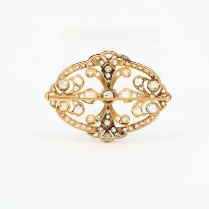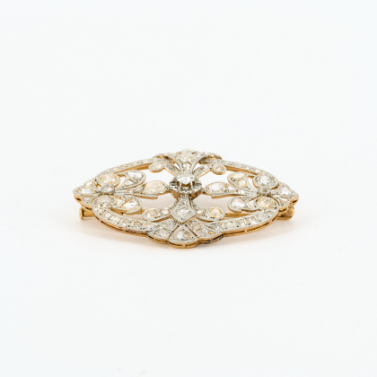 Diamanten: Ca. 67 Diamanten im Alt-, und Rosen-Schliff zus. ca. 5,3 ct., J-M/SI1-P.