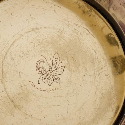 Marke: Im Boden bez. 'Emile Gallé del.' sowie 'Modèle et décor désposés' mit Schmetterling und Farn.