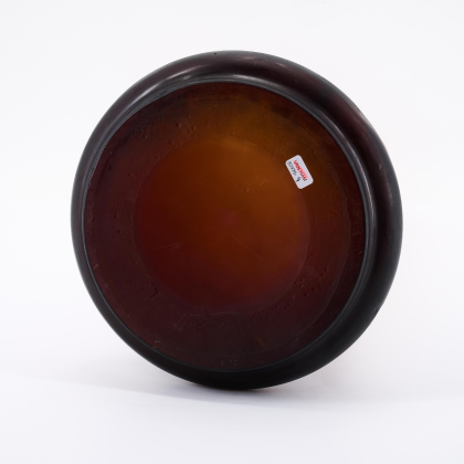 Material: Farbloses Glas, lachsfarbener Unterfang, gelber und bernsteinfarbener Überfang, Ätzdekor.