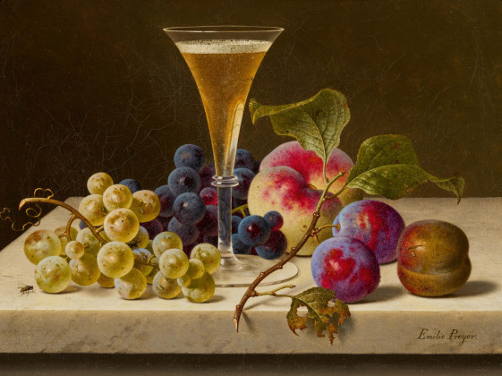 Los 668 | Emilie Preyer | Stillleben mit Trauben, Prirsich, Pflaumen und einer Champagnerflöte