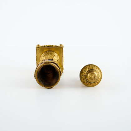 Technik: Bronze vergoldet, Kupfer. Fluorit, sog. Blue-John, Derbyshire.