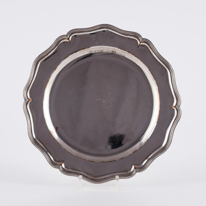 PAAR PLATZTELLER MIT PASSIGEM RAND UND SCHÖNER WAPPENGRAVUR.