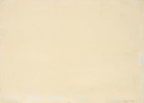 Herstellungsbedingt leicht gewellt. Minimale Knickspuren in den oberen beiden Ecken. Verso Reste alter Montierung sowie minimal gebräunt und minimale Verschmutzungen. Ansonsten guter Zustand.