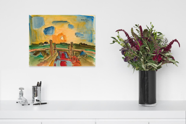 Ernst Mollenhauer Deutschland Expressionismus Moderne Kunst Unikate 1960er Landschaft Papierarbeit Aquarell Himmel