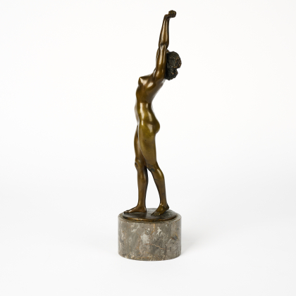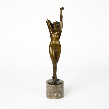 Technik: Bronze, hellbraun patiniert. Auf Marmorsockel.
