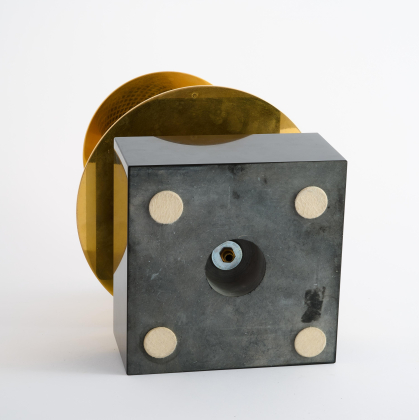Technik: Schwarzer Marmor, Onyx, vergoldetes und versilbertes Messing, schwarz lackiertes Metallgitter.