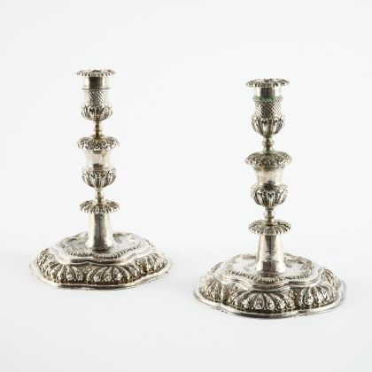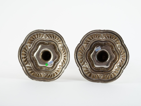 ansetzend mit entsprechendem Dekor. Vasenförmige Tüllen mit quadratischen Punzierungen.