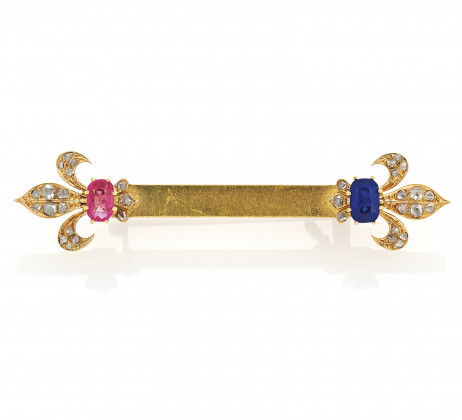 Edelsteine: 1 ovaler, facettierter Saphir ca. 0,5 ct., 1 roter, facettierterer Farbstein ca. 0,4 ct.