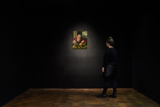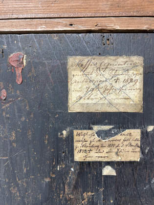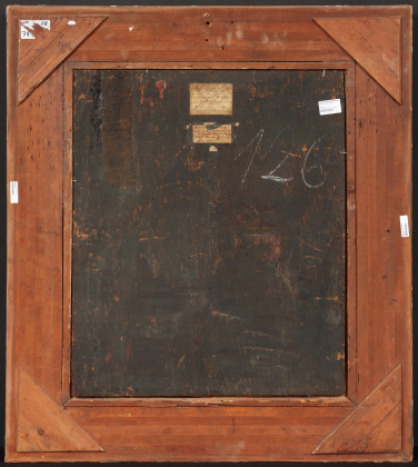 Auf der Tafel Sammlungssiegel sowie Klebezettel mit alten Zuschreibungen an Quentin Massys, bzw. Georg Pencz.