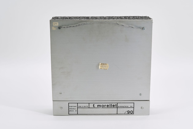 Bezeichnung: Signiert und nummeriert verso: Morellet, 22/90. Hier zudem typografische Bezeichnung: edition media, 28.2.1973, f. morellet, edition media plus 3.