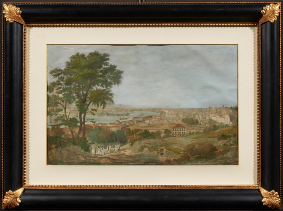 Francesco Zerilli Italien Klassizismus 1.H. 19.Jh. Handzeichnungen Rahmen Stadtansicht Gouache Sizilien